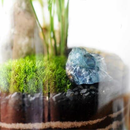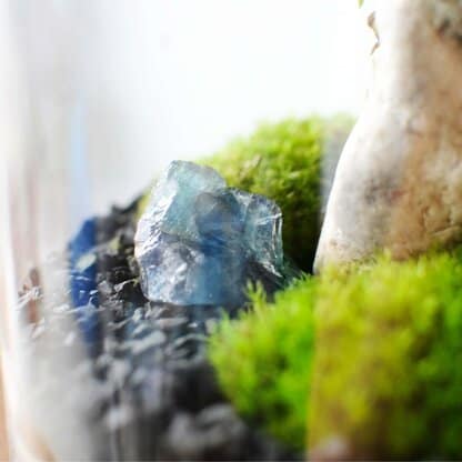 surowy kamień pokrywa warstwa pyłu – wypłucz go przed umieszczeniem w szkle, a zmyjesz jego zabrudzenia. Zobaczysz wtedy prawdziwe kolory, które pojawią się pod wpływem wilgoci i pozostaną równie intensywne w zamkniętym szklanym naczyniu.