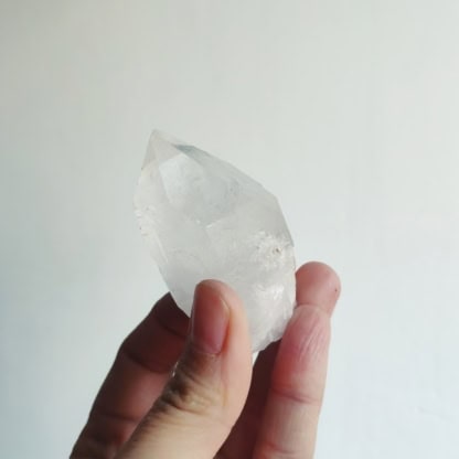 1 sztuki surowego kamienia szlachetnego – kryształu górskiego pochodzącego z południowoamerykańskiej Brazylii o długości 5-7 cm. Każdy kryształ posiada jedno zakończenie (spiczasty czubek). Jest to surowy kryształ, a więc nie jest idealnie gładki, posiada gdzieniegdzie delikatne odpryśnięcia, dzięki czemu wyglada bardzo naturalnie.