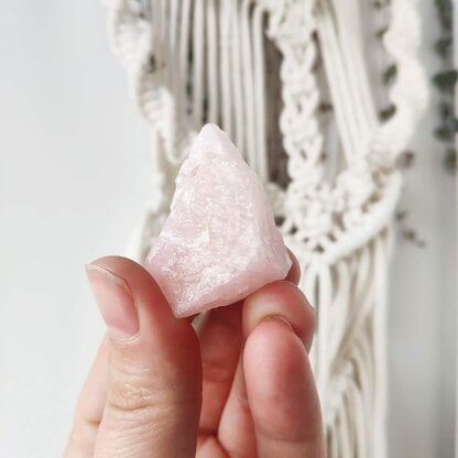 1-2 sztuk surowego kamienia szlachetnego kwarcu różowego pochodzącego z Malawi o wadze 30-50g. Jest to surowy minerał, a więc każda skałka jest inna, posiada w niektórych miejscach delikatne odpryśnięcia, dzięki czemu wyglada bardzo naturalnie