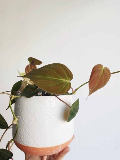 Rośliny przecenione, znacznie większe niż sadzonki ze zdjęć, posiadają pojedyncze ślady uszkodzeń mechanicznych na listkach, pomimo tego świetnie prezentują się jako pnącza.