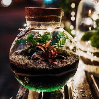 Szklana kula z korkiem wykonana ręcznie ze szkła ekologicznego (pochodzącego z recyklingu) w polskiej hucie. Jest to średnie szklane naczynie zamknięte korkową pokrywą, które zostało wykonane z cienkiego szkła o zielonkawej barwie, na którego powierzchni widoczne są delikatne pęcherzyki powietrza, co nadaje mu oryginalności i uroku. Kula dobrze przepuszcza promienie słoneczne dzięki czemu rosnące w niej rośliny tworzą piękną i długowieczną kompozycję. W środku możesz stworzyć miniaturową kompozycję z paproci, mchów oraz roślin tropikalnych. Ta szklana kula ma potencjał!
