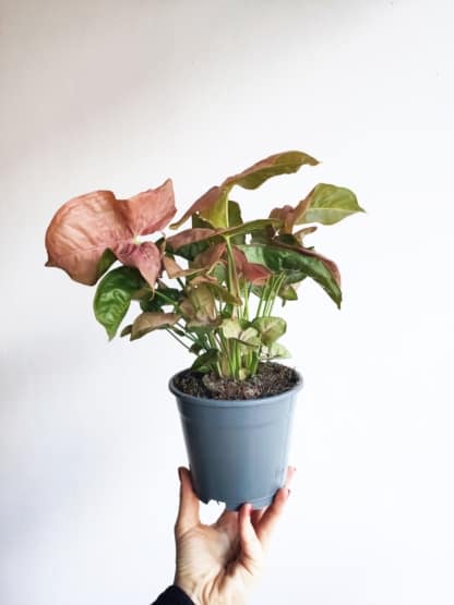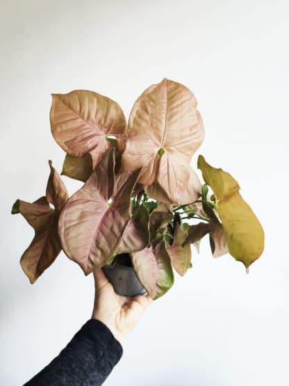 - jestem jedną z najciekawszych odmian syngonium o różowawych, sercowatych liściach i kompaktowym pokroju