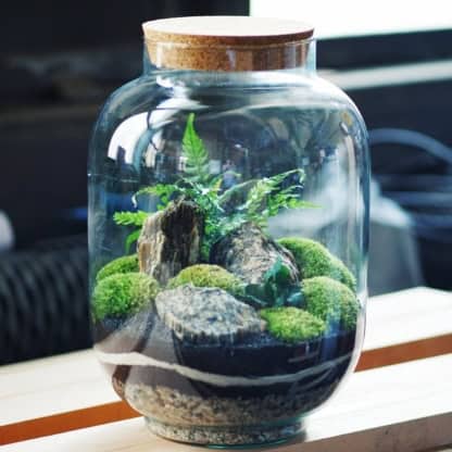 Szeroki i wysoki słój z naturalnym, aglomerowanym korkiem, wykonywany ręcznie w polskiej hucie. Jego oryginalny kształt pozwala na stworzenie w niej pokaźnych rozmiarów kompozycję z wilgociolubnych roślin, takich jak paprocie, fitonie oraz mchy. Słój jest stworzony z zielonkawego szkła o niewielkiej grubości ścianek, co pozwala na dużą przepuszczalność dla promieni świetlnych. Uroku dodają delikatne bąbelki powietrza, które powstają w szkle w wyniku ręcznej produkcji. Posadzona w szerokim słóju kompozycja będzie pięknym prezentem dla bliskiej osoby i oryginalną dekoracją. Stwórz własną kompozycję w tym szkle a zobaczysz jaka to frajda!
