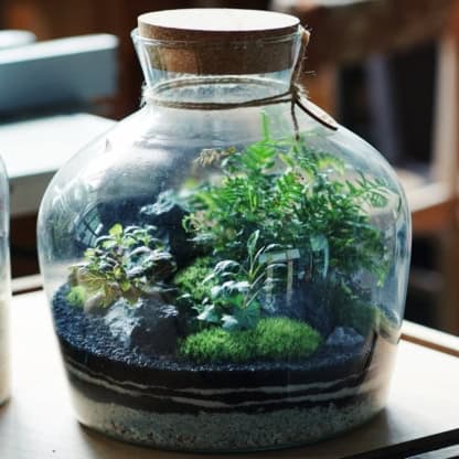 Szklany gąsior to jeden z najbardziej oryginalnych kształtów szkła do zakładania własny lasów w szkle. Pobudź swoją kreatywność i posadź w nim paprocie, mchy i kolorowe fitonie, a stworzysz niepowtarzalną kompozycję zamkniętą pod szklanym korkiem. To 30 centymetrów średnicy naczynia i wielkie możliwości!