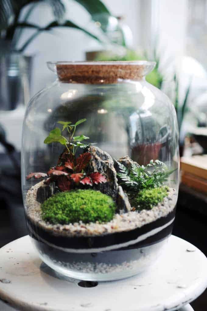 Ogrody w szkle – miniaturowe ekosystemy, mchy i paprocie zamknięte w szklanych słojach, odwzorowujące w skali lasy tropikalne lub wilgotne i ciemne runo leśne. To małe biosfery, gdzie panujące warunki imitują naturalne środowisko życia roślin. Otoczone szkłem stanowią małe dzieła sztuki, a raz zamknięte nie wymagają ponownego otwierania i pielęgnacji.