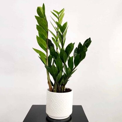 Kochany kliencie! Oferowany przez nas produkt to zamiokulkas w doniczce produkcyjnej (bez ozdobnej osłonki). Jeżeli masz ochotę dopasować do niego osłonkę znajdziesz ją TUTAJ