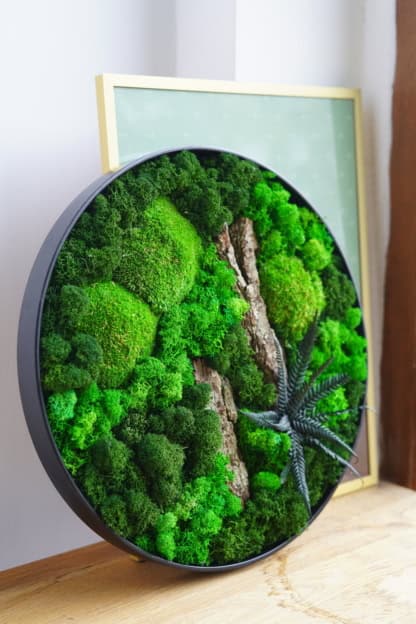 Zestaw zrób to sam – zestaw obraz z mchu w kole – obraz z mchu koło ze stabilizowanych mchów i porostów do samodzielnego wykonania