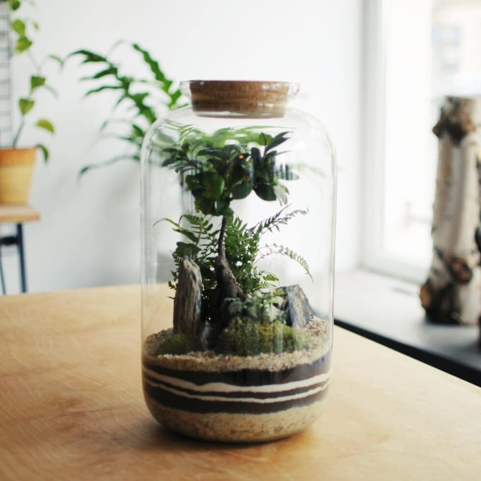 Kupując wszystkie elementy zestawu razem masz pewność, że właściwa ilość drenażu i podłoża znajdzie się w Twoim lesie w słoiku. Grubość warstwy drenażowej w ogrodzie w szkle jest odpowiednio wymierzona (warstwa ta nie powinna być zbyt cienka), a także ilość podłoża dostosowana do średnicy naczynia (gleby nie powinno być za dużo w słoiku). Dodatkowo warstwę ziemną możesz udekorować wybranymi przez nas piaskami w dwóch kolorach, które dla Ciebie przygotowaliśmy.